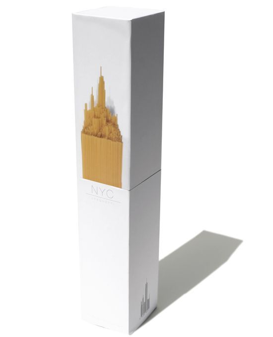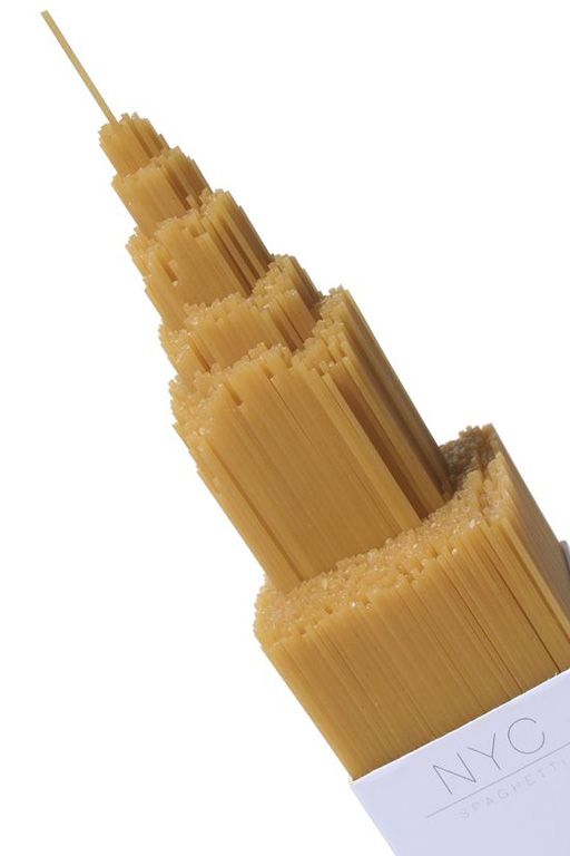 Макароны упакованы в форме Эмпайр Стейт Билдинг. Классная идея :)