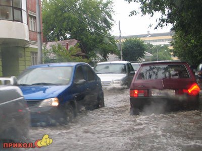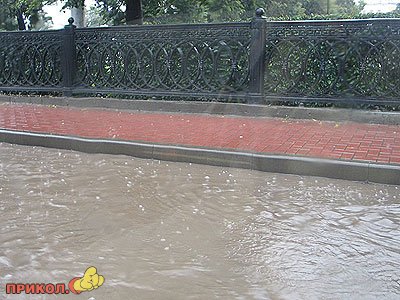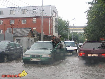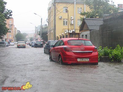 «Рязань залило! дождь льет и льет… Нашу 9-тиэтажку затопило, хорошо еще что не квартиру (8 этаж, еще есть 9 над головой) но шахта лифта напоминает водопад! и на площадке лестничной потоп! а еще мы с папой уже 1,5 часа пытаемся выехать из города-пробки, аварии, видимость ужасная! хорошо если к 9-ти вечера прибудем на дачу..»