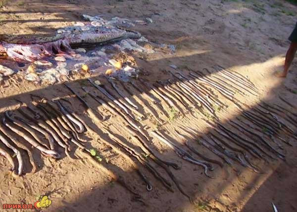 Почему же очень даже вместились бы. и помоему и яйца там есть, вон же они, только они ж не как куриные, вон потроха белые, это и есть яйца, а змеек из них вытащили просто. Или не?))))
