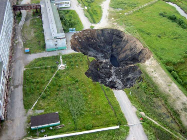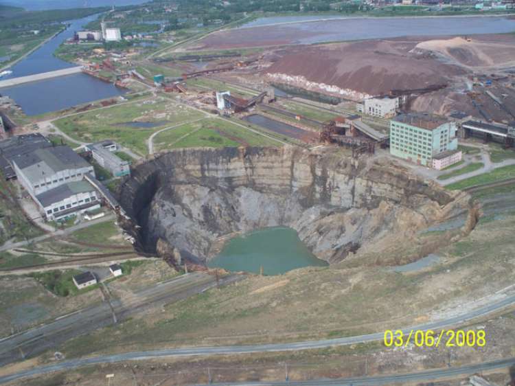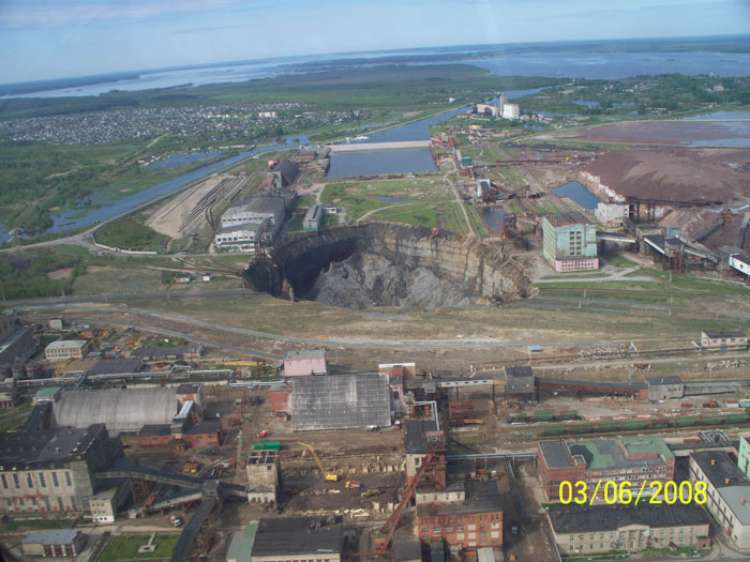 Провал рос «стахановскими» темпами, и к лету 2008 года достиг диаметра 350 м. и глубины около 100. Затем процесс замедлился.