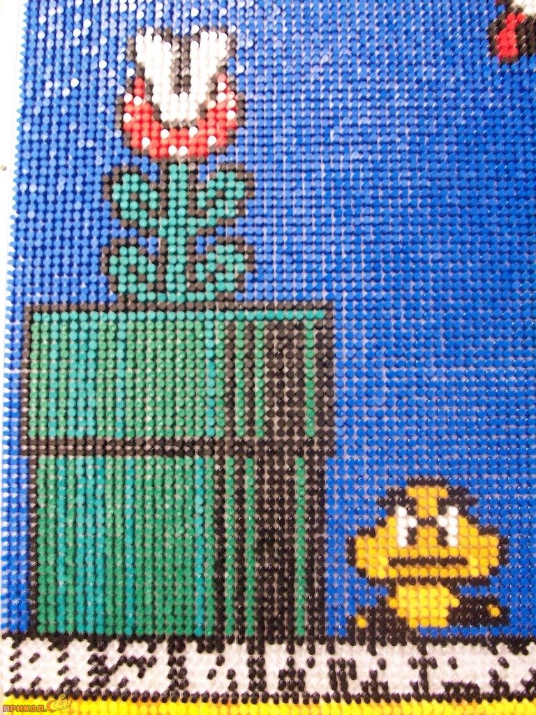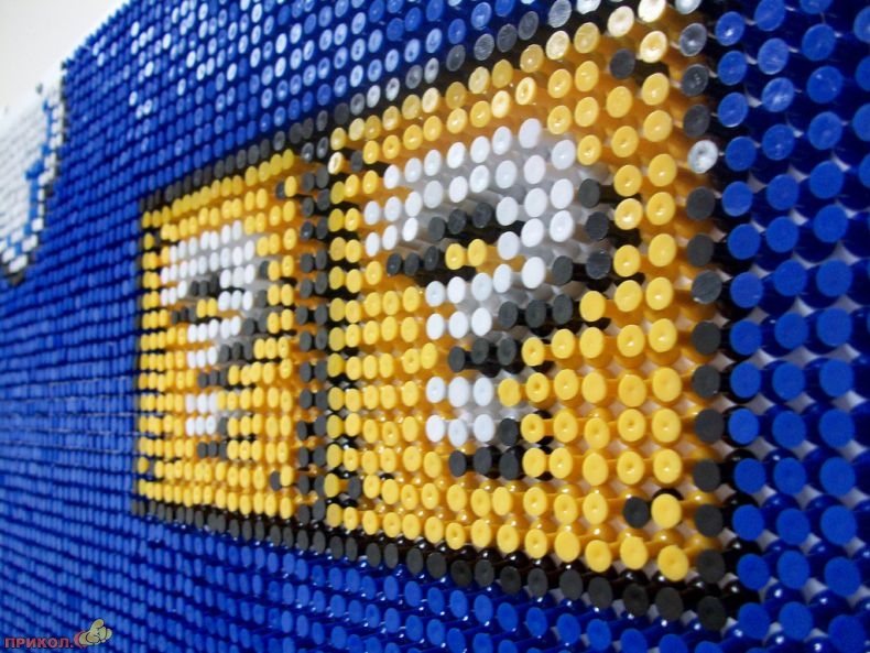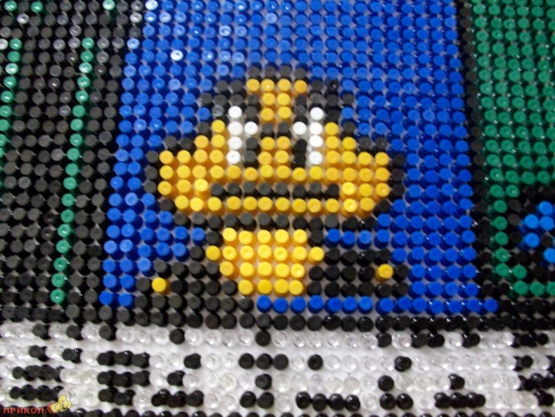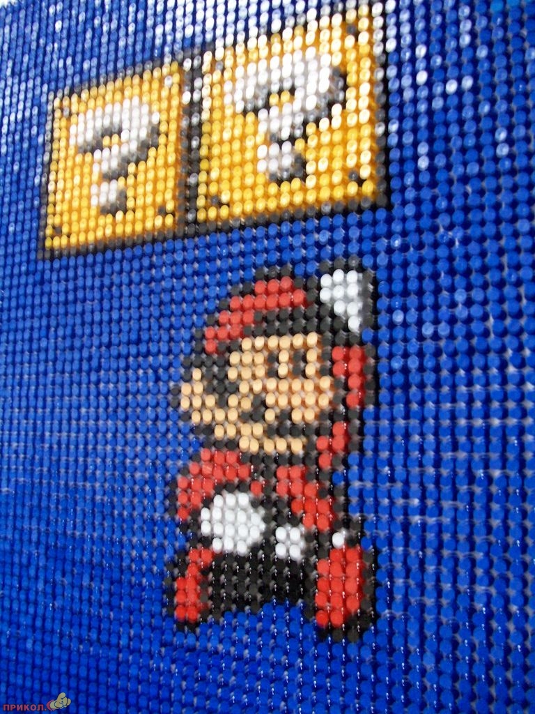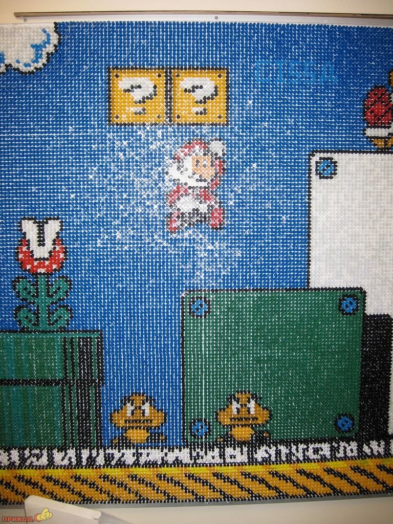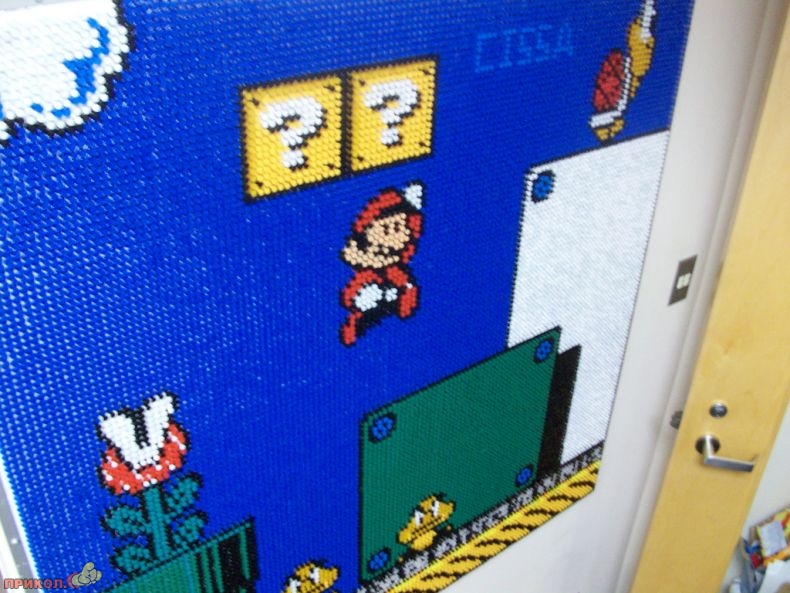 Вот пример еще одного фаната — он «рисует» фрагменты любимой игры цветными канцелярскими кнопками. Получается здорово.