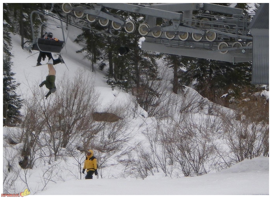Начало 2009 года этот 48-летний мужчина запомнит надолго! 1 января ему пришлось 15 минут провести в таком унизительном положении на горнолыжном подъемнике, прежде чем ему помогли слезть.