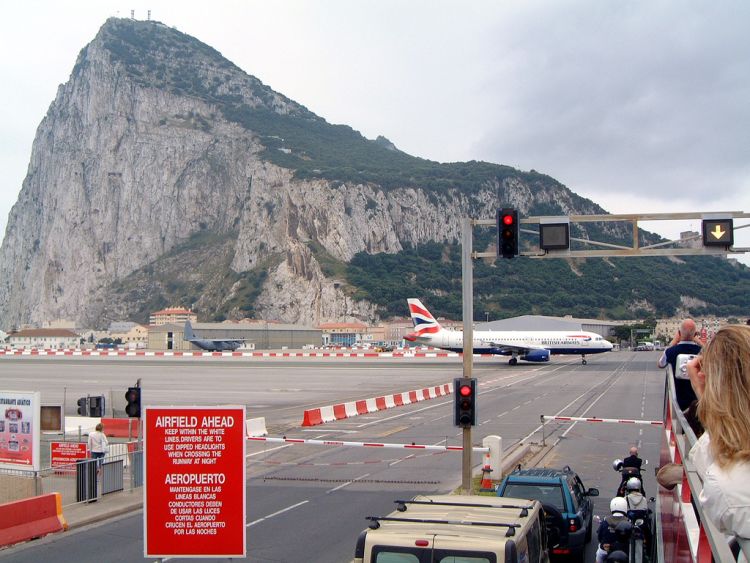 Этот аэропорт интересен тем, что его взлетная полоса пересекает дорогу в Испанию. Когда самолет выруливает на взлетную полосу, шоссе с обеих сторон перекрывают шлагбаумами, останавливая поток транспорта. Смотрите сами: