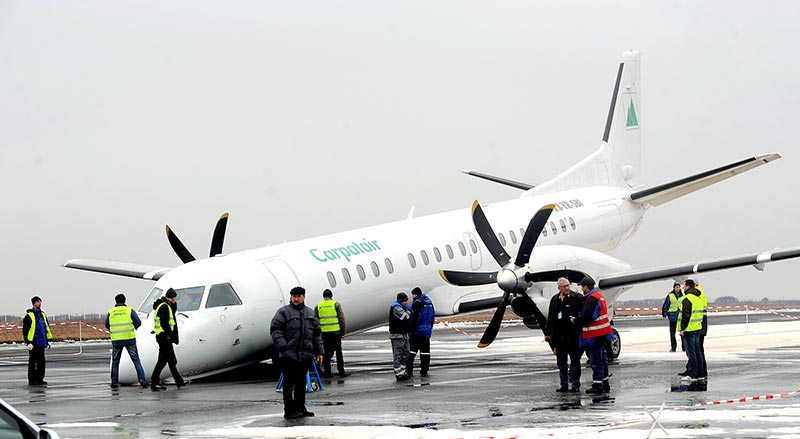 Вчера в Румынском аэропорту совершил аварийную посадку вылетевший из Кишинева самолет Saab 2000, с 47 пассажирами на борту. Во время полета возникли проблемы с выпуском переднего шасси и самолет около полутора часов кружил над аэропортом, вырабатывая горючее. Затем благополучно приземлился. Слава Богу, никто не пострадал.