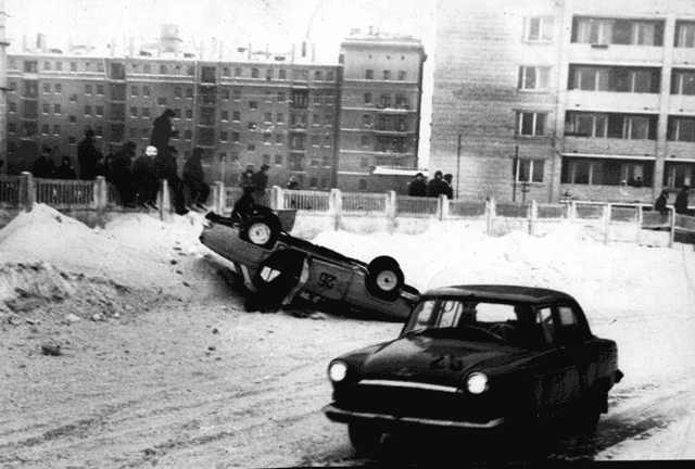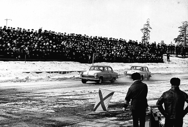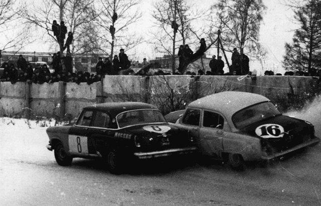 Серия старых фотографий из журнала «За Рулем». Советские «москвичи», волги и «копейки» с литровым двигателем и 60-ю лошадиными силами под капотом яростно борятся за звание чемпиона :)
