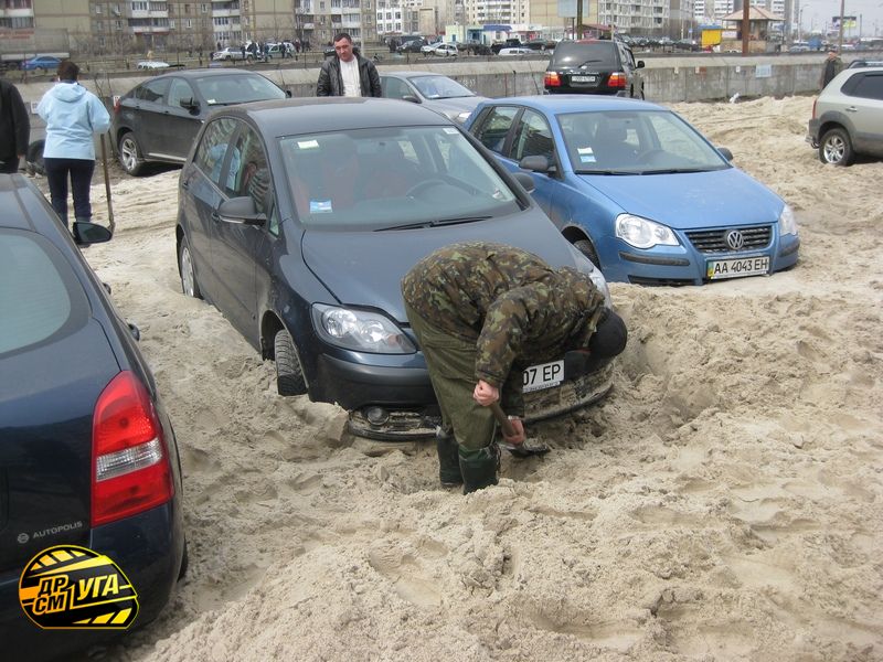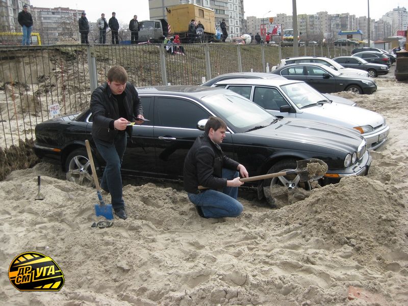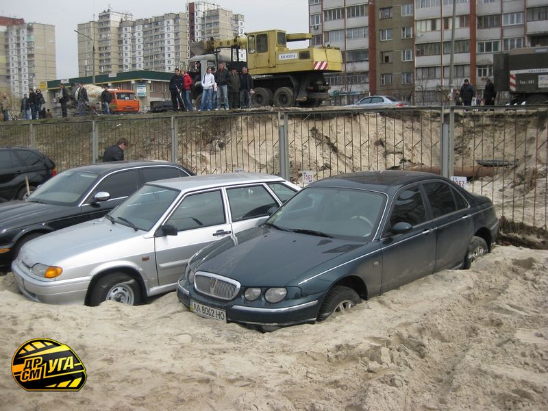 В Киеве, в ночь с субботы на воскресенье затопило автостоянку. По рассказам очевидцев, прорвало трубу с холодной водой, которая била ключом и несла на стоянку грязь и песок в течение трех часов. В итоге многие автомобили просто погрязли в этом безобразии, не смогли завестись, их пришлось откапывать.