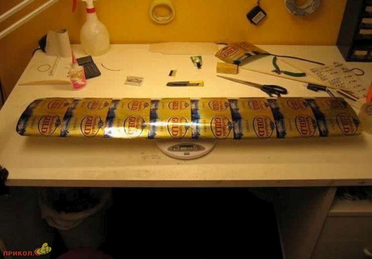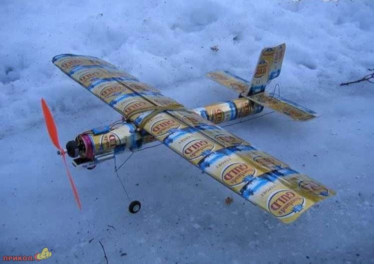 Если имеется в наличии пара часов свободного времени и прямые руки, то можно сконструировать самолет из пустых пивных банок. Смотрим! :)