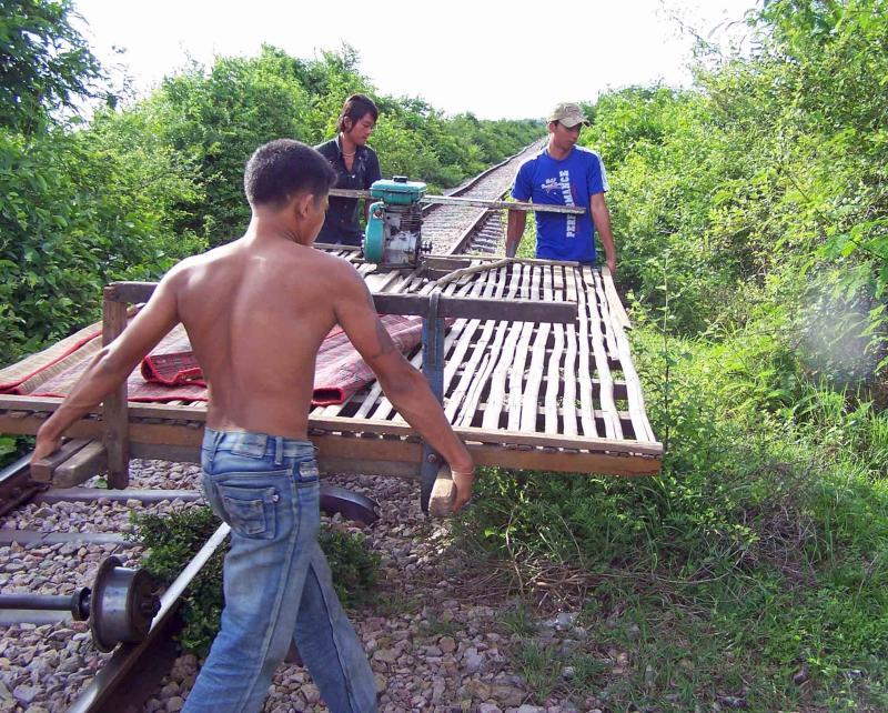 Ребята из Камбоджи нашли способ экономить на горючем, которое стоит недешево. Железная дорога + самодельная дрезина, приводимая в движение либо двигателем мотоцикла, либо мускульной силой велосипедиста. Смотрим! :)