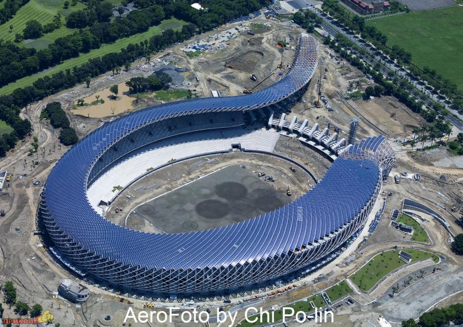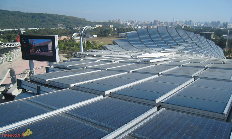 На Тайване построен стадион, на крышу которого заменяют огромные солнечные панели, общей площадью чуть более 14 тысяч квадратных метров. Благодаря им стадион способен произвести 1,14 гигаваттчасов электроэнергии ежегодно! Стадион вмещает 55 тысяч зрителей. Стоимость постройки составила 150 миллионов долларов США. Первые игры на стадионе пройдут уже в июле 2009 года.