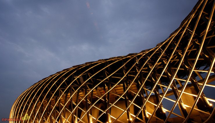 На змею похожа, которая обхватила стадион.