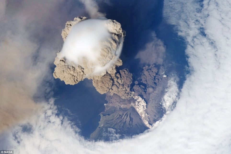 Позже стало известно, что в это время над Курилами пролетала международная космическая станция и вот сегодня мы с вами можем посмотреть эти уникальные фотографии извержения вулкана, сделанные из космоса.