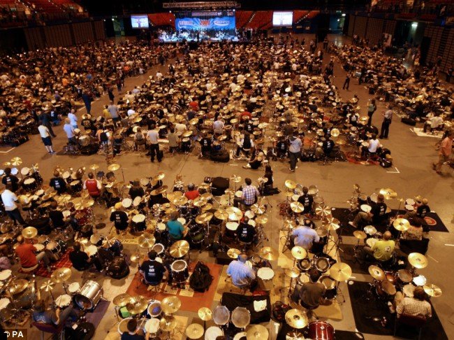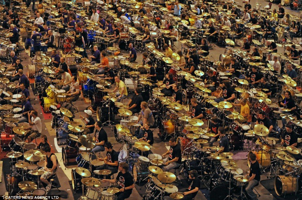 Мировой рекорд был установлен вчера, 13 июля, в Бирмингеме — 582 ударника в течение пяти минут играли в одном ритме, и им удалось перебить предыдущее достижение 2006 года, когда собралось 533 участника.