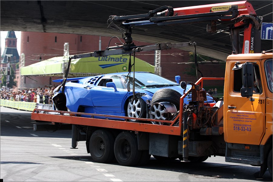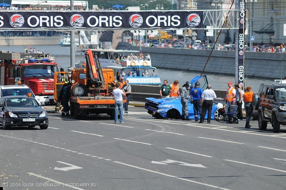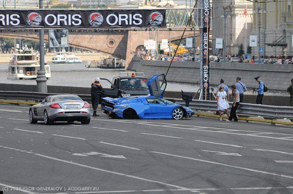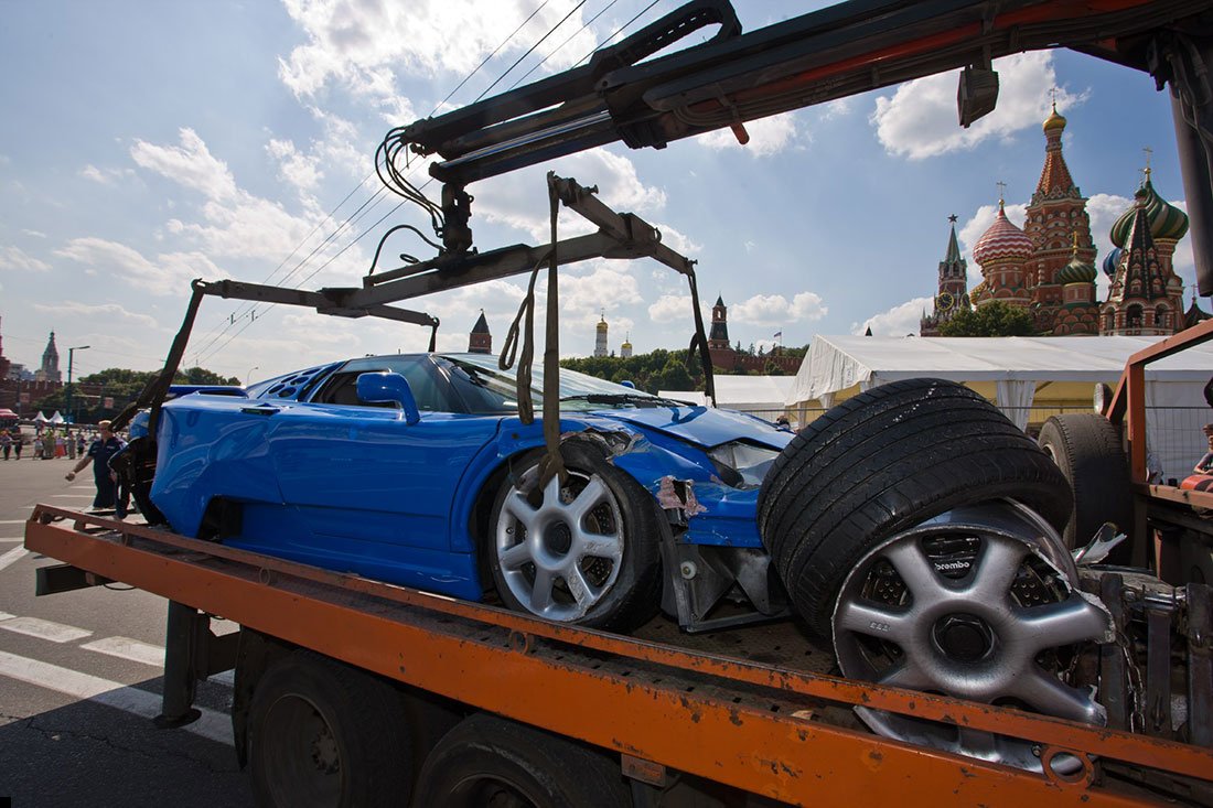 19 июля в Москве прошло шоу Bavaria Moscow City Racing, главным событием которого случайно стала авария Bugatti EB 110 Super Sport — водитель не справился с управлением и врезался в отбойник. Автомобиль стоимостью два миллиона долларов восстановлению не подлежит. В мире таких машин всего 24. То есть, уже 23.