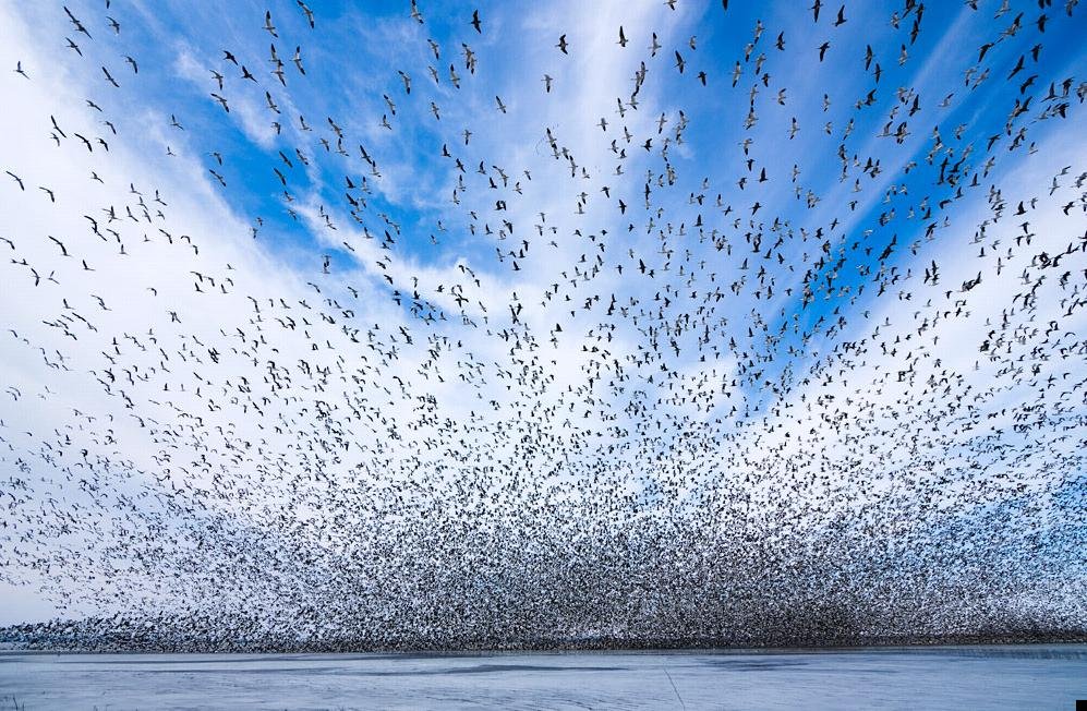 Удивительные фотографии всполошенной птичьей стаи. Птицы буквально затмевают собой небо. Смотрите на следующем фото.