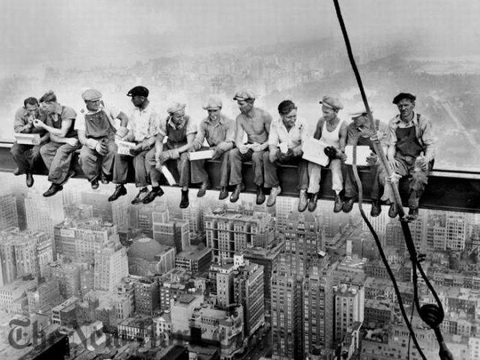 На балках страшно вот так вот без страховки сидеть, лежать и есть.