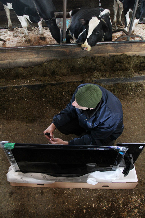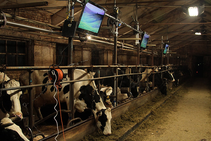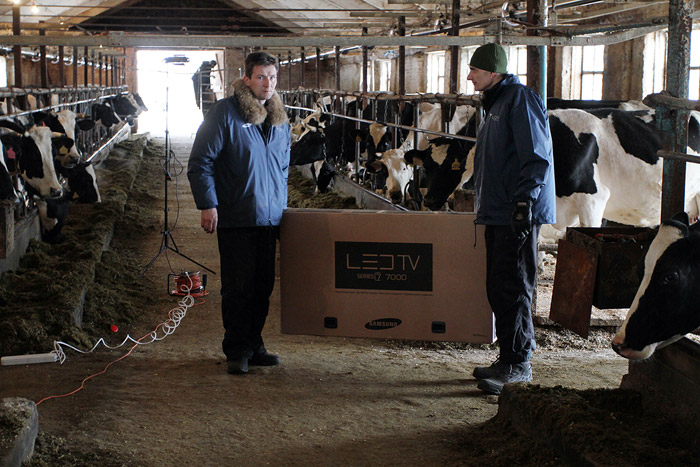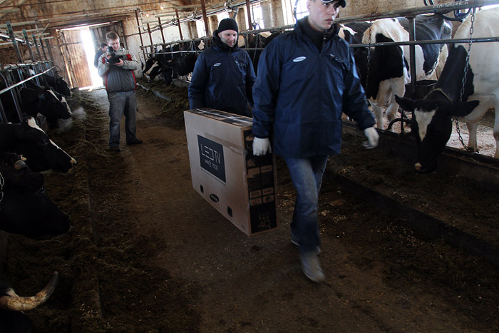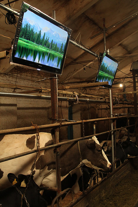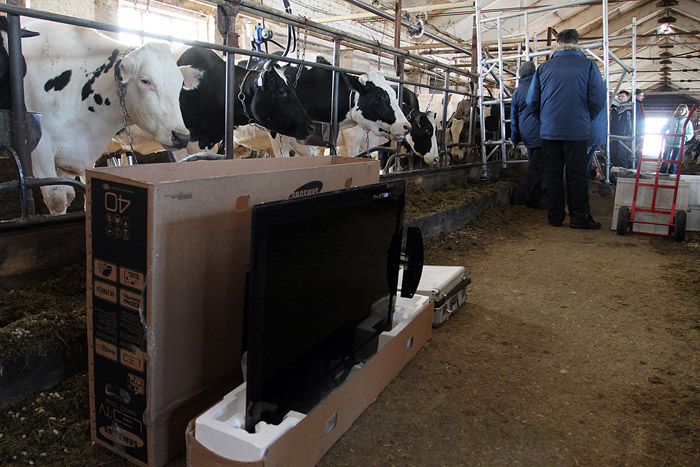 10 марта 2010 года в коровник молочной фермы «Кочергино» Дмитровского района Московской области установили шесть новеньких широкоформатных телевизоров Samsung LED TV. Телевизоры закрепили над стойлами и включили трансляцию зеленых альпийских лугов. В качестве звукового сопровождения — классическая музыка. В результате эксперимента ожидается повышение надоев у контрольной группы коров :)