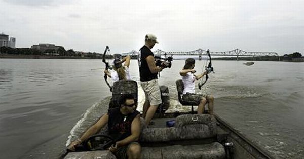 Каждый год охотники собираются на озере в штате Иллинойс, чтобы принять участие в экстремальной ловле карпов. Для этого они используют лук, из которого стреляют по выпрыгивающей из воды рыбе.