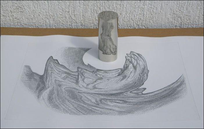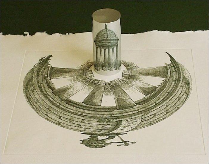 Смотреть нужно на отражение в цилиндре :)
