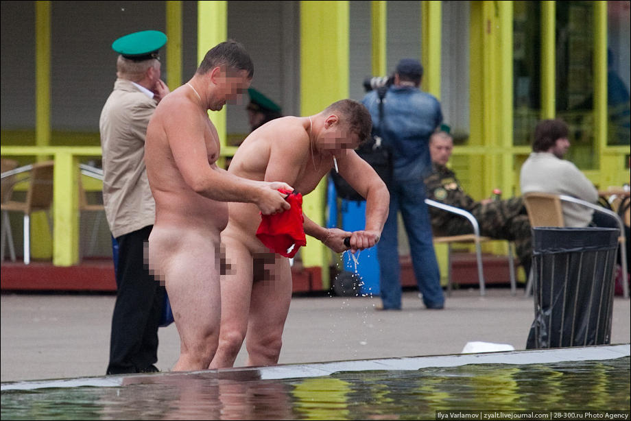 голой жопой у фонтана.