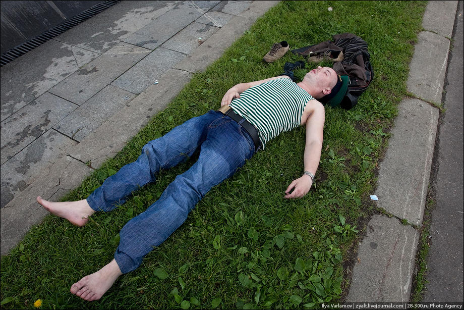 празднуют этот день вот так,в блевотине на газоне или с
