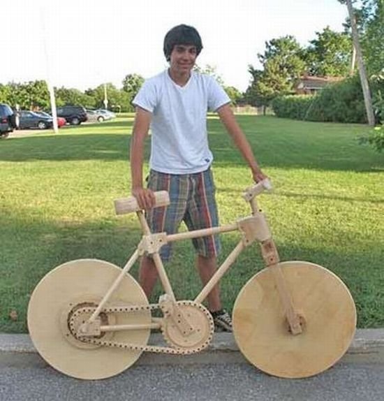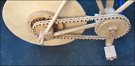 16-летний дизайнер тоже создал полностью деревянный велосипед. Даже с цепной передачей, причем цепь тоже сделана из дерева.
