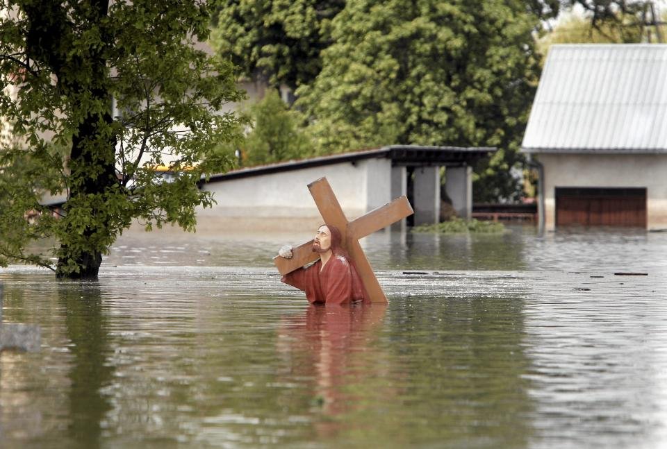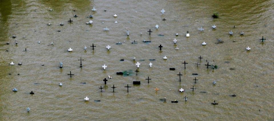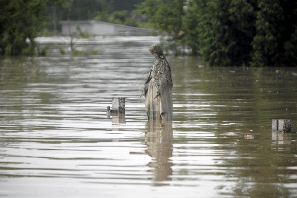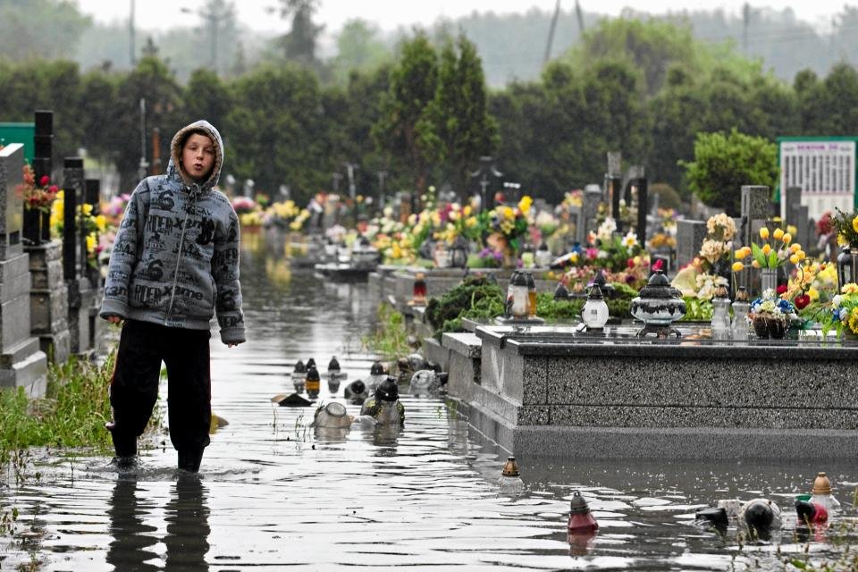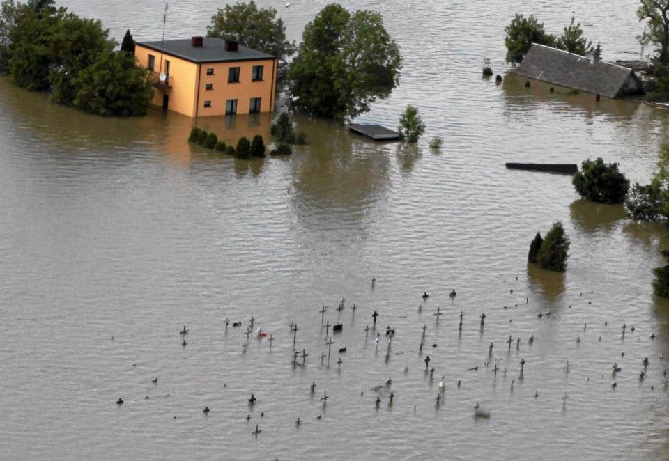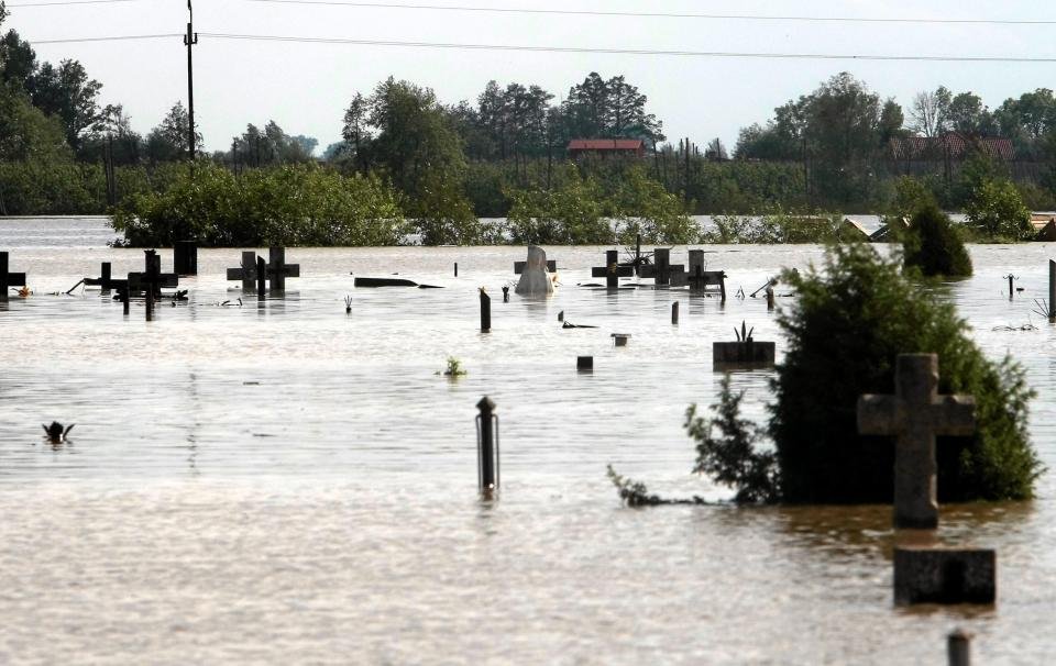 В результате недавних мощных наводнений в Польше оказались затопленными многие кладбища.