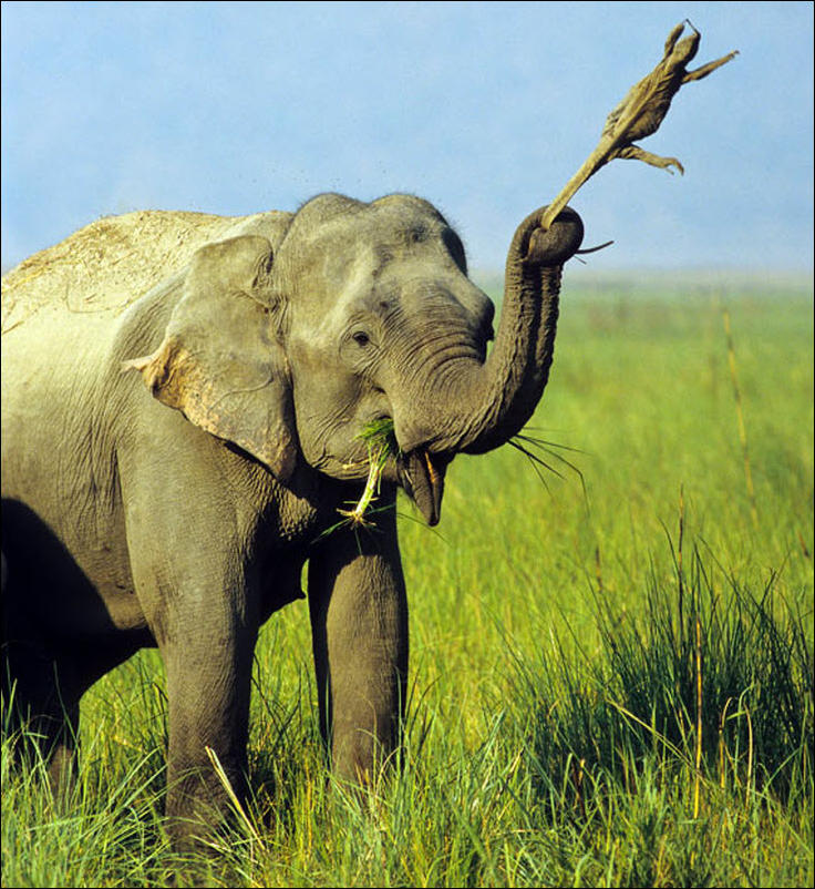 Вот этот слон поймал ящерицу за хвост и носил ее в хоботе несколько дней, размахивая ей туда-сюда. Потом отпустил. Ящерица в шоке. (похожий случай с крокодилом)
