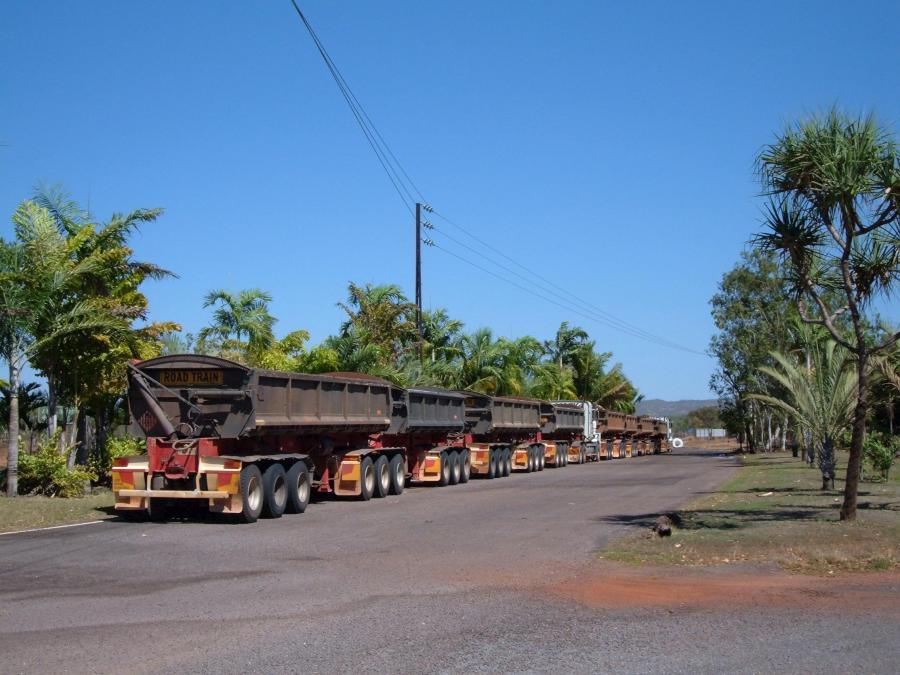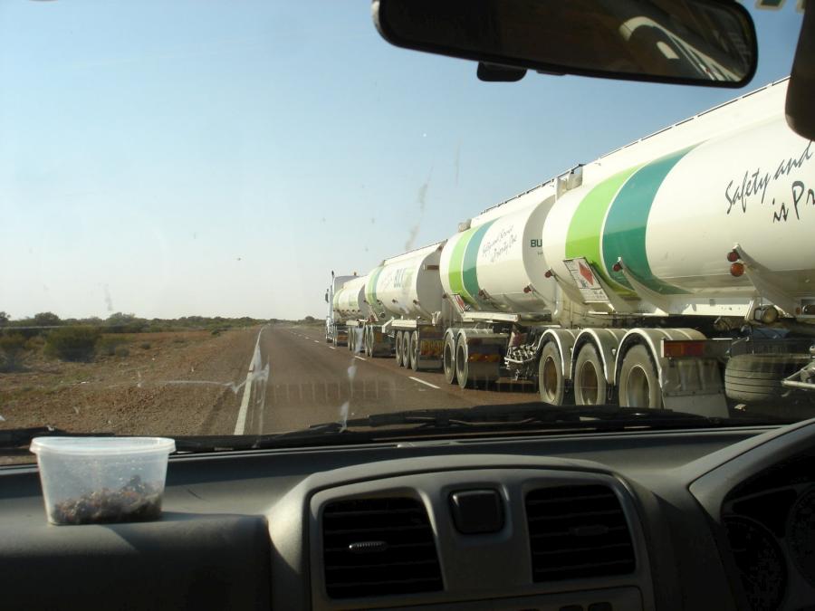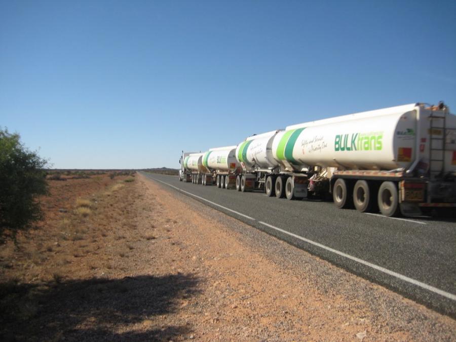 только в австралии практикуются подобные грузоперевозки, т.к. только в австралии крайне неразвита железнодорожная сеть + левостороннее движение ==> это австралия