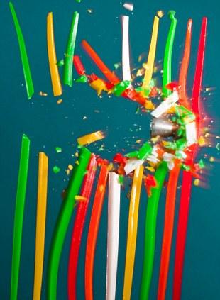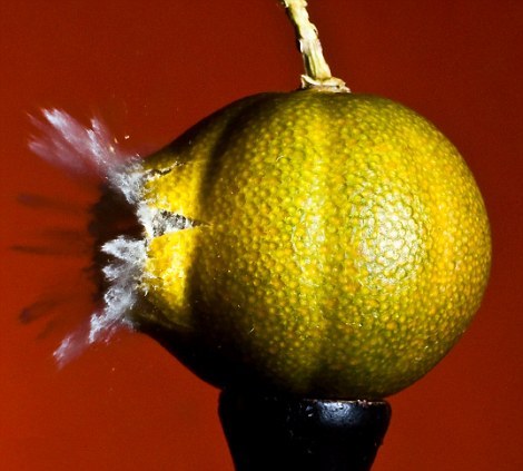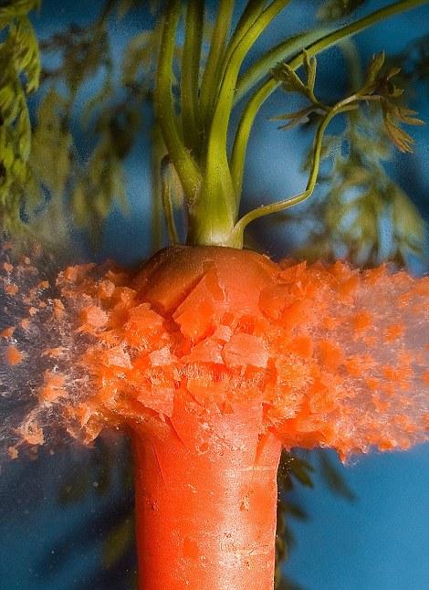 Высокоскоростная фото-съемка попадания пули в самые различные предметы от овощей до коктельных трубочек.