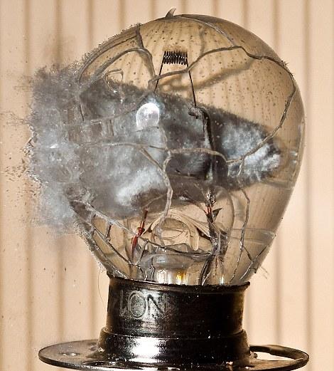 На 3 снимке (лампочка наплненная водой) пуля похоже из пневматического оружия выпущена.