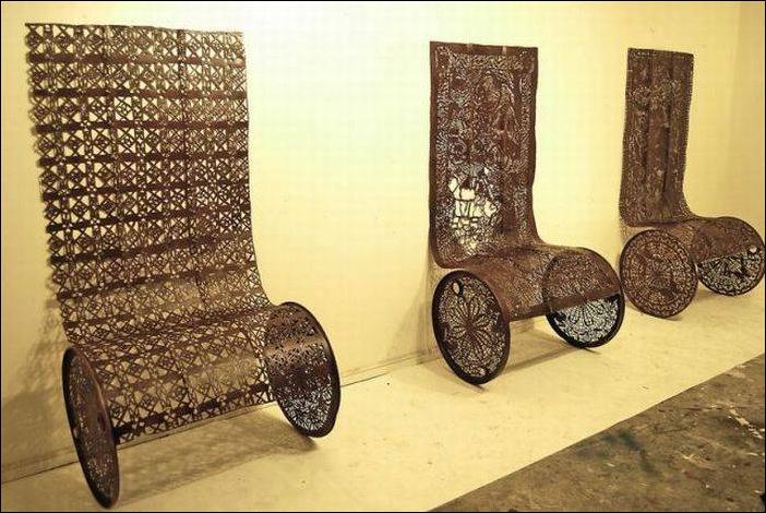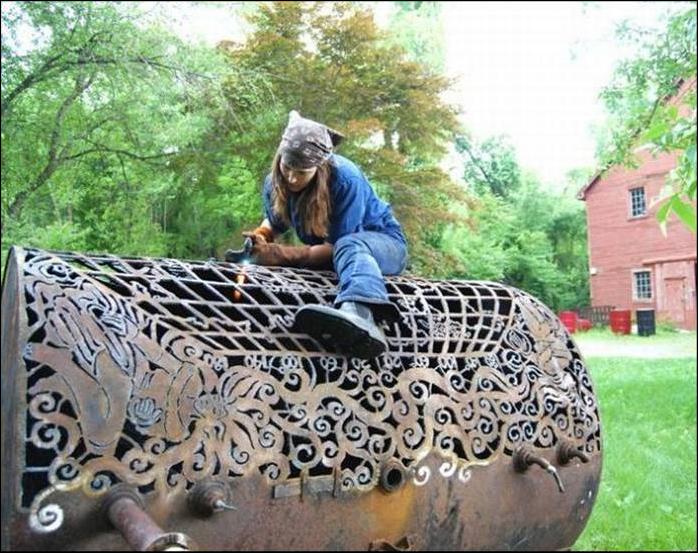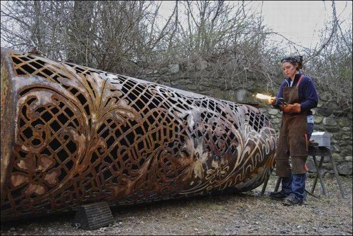 А сколько нужно терпения, чтобы превратить ржавую железную бочку в замысловато-узорную скамейку? Одной ей известно.