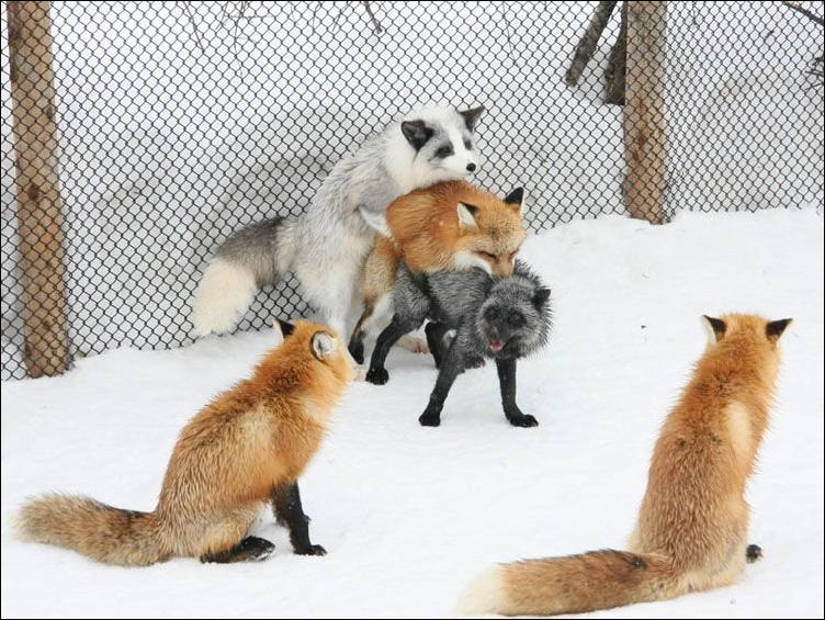 От смешения чернобурки, лисы и песца получатся серо-буро-малиновые щенята. :grin: