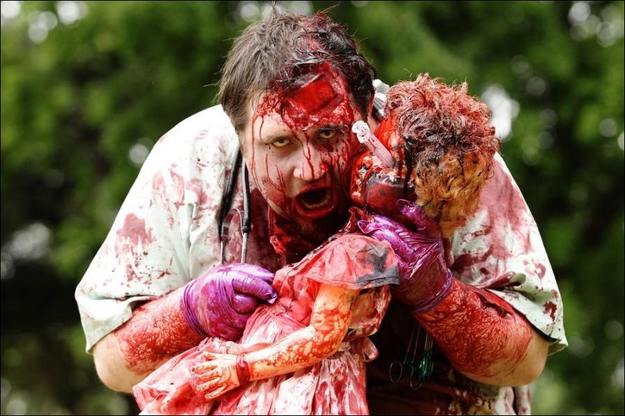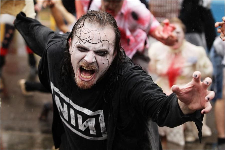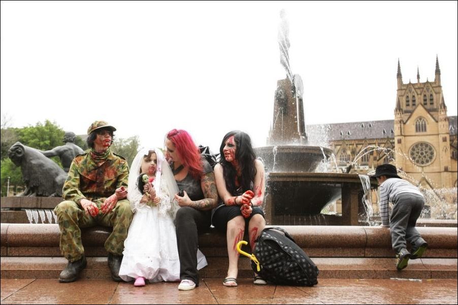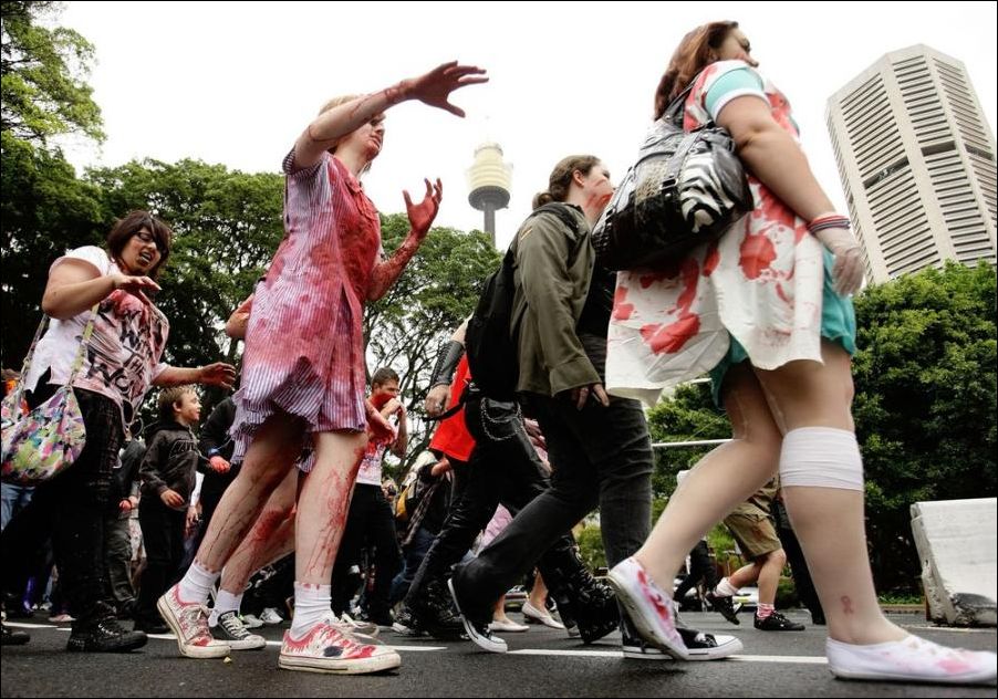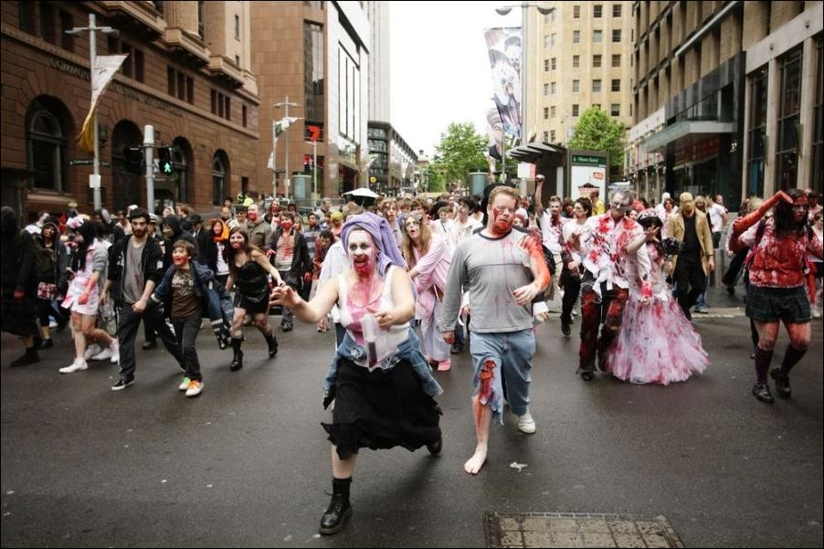 В Австралийском городе Мельбурне проходит ежегодный парад зомби. По улицам ходят загримированные люди и пугают прохожих.
