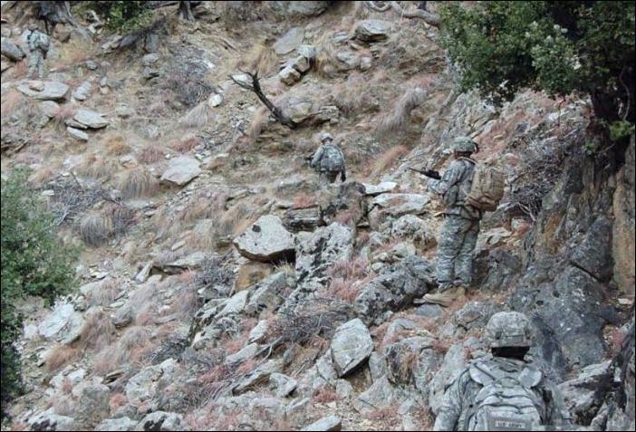 На предпоследней боец точно в центре фото,чуток левее большого камня..На последней не вижу где..