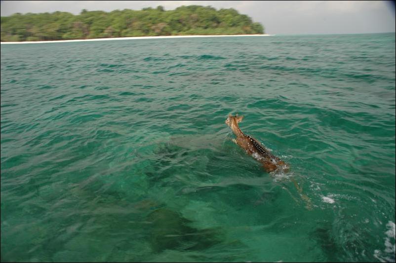 Удивительный случай произошел на острове Havelock — косуля, спасаясь от тигра, выбежала на берег и бросилась в море.
