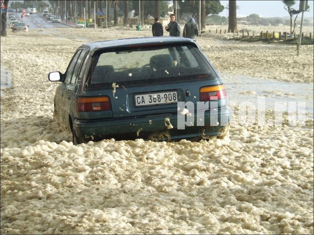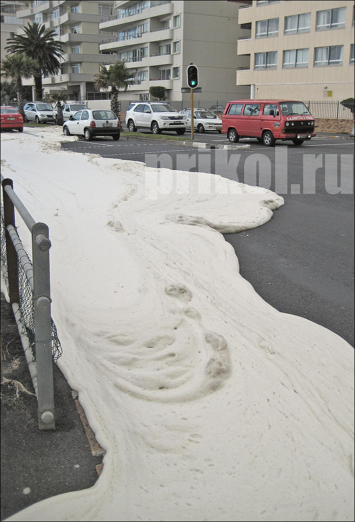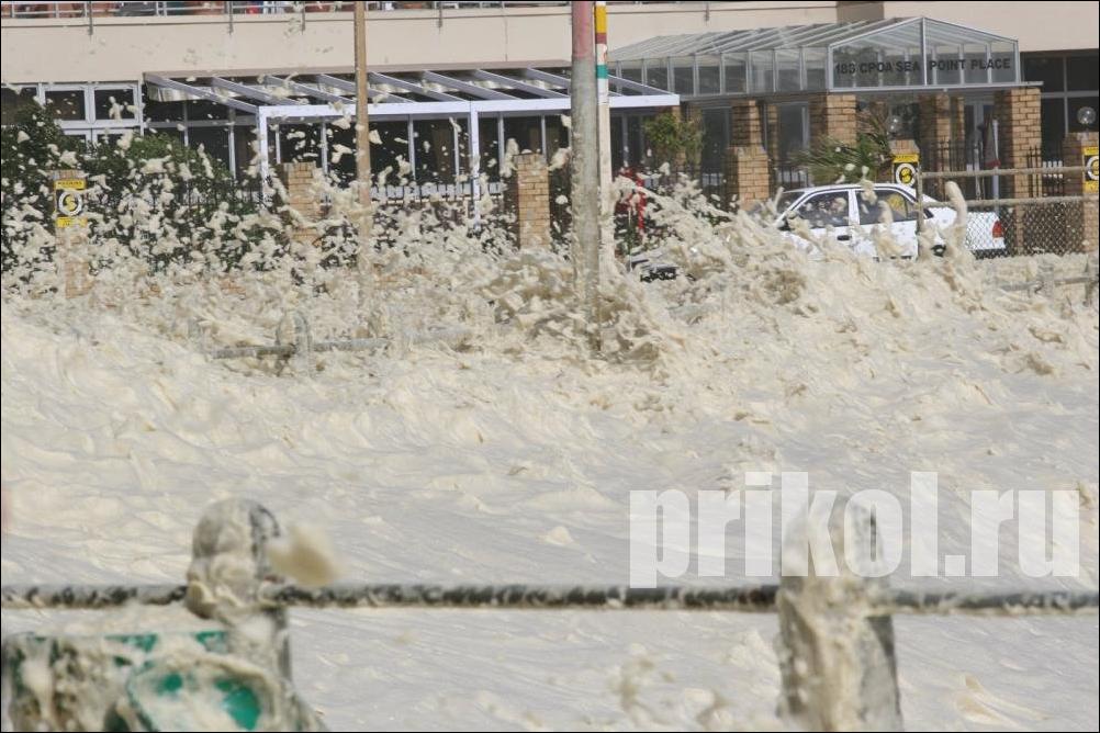 Густая океанская пена залила все побережье Кейптауна! Такое случается не часто :)