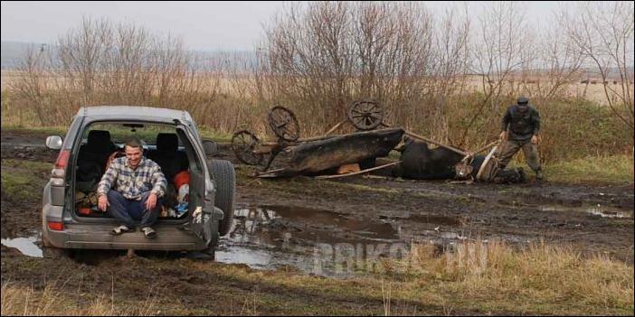 Деревенская лошадка приходит на помощь железному коню! :)