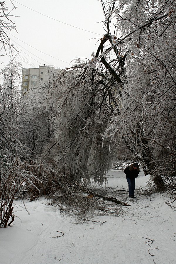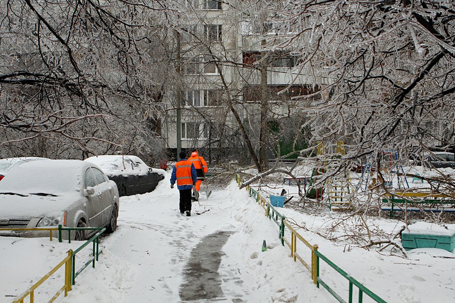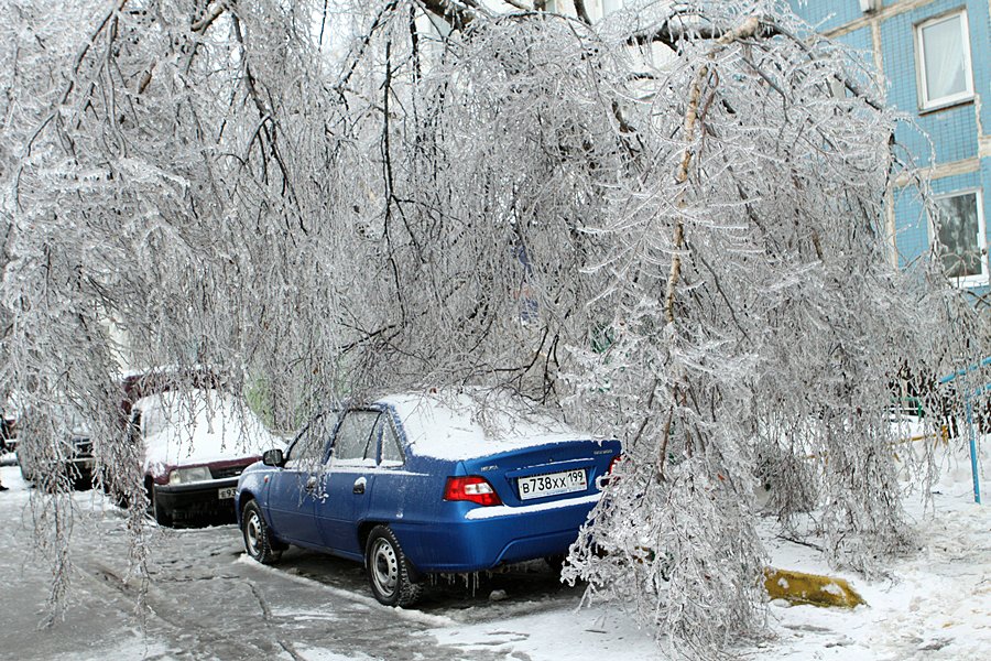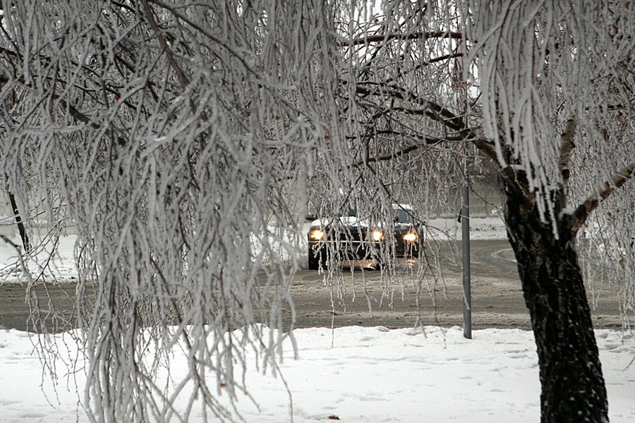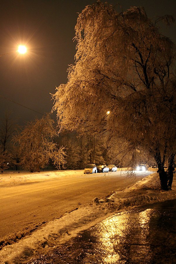 Дождь при отрицательной температуре воздуха сделал свое дело. Город покрылся ледяной «глазурью».