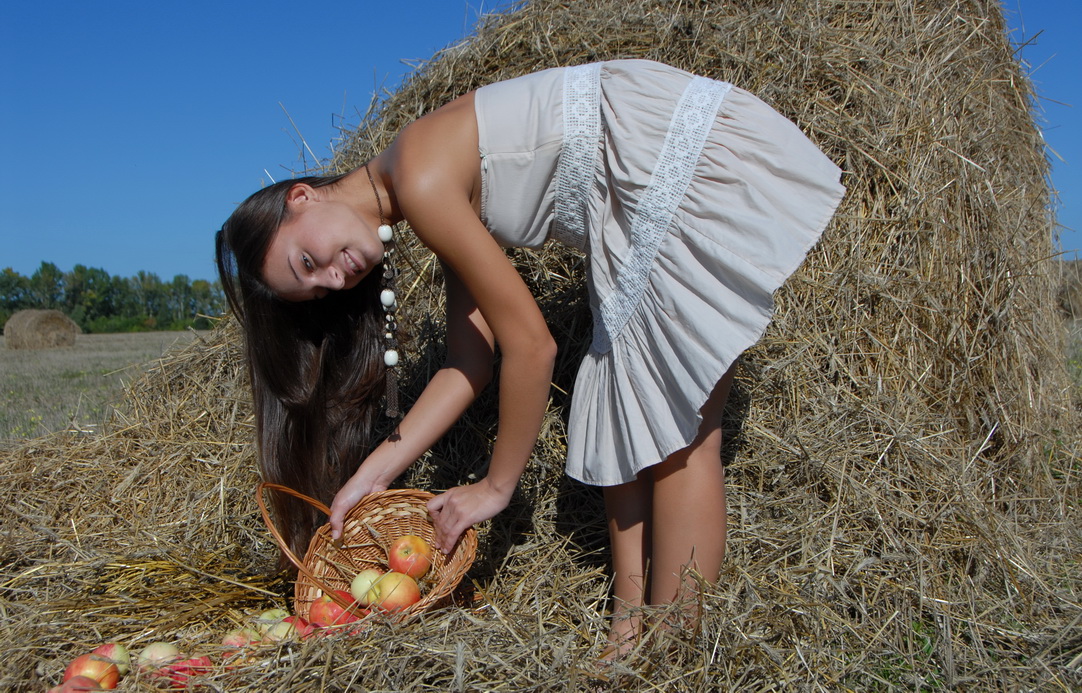 Сено,яблоки,девушка,а фотограф романтик.