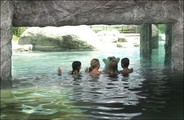 Вот такой необычный аттракцион придумали в Канаде. На самом деле бассейн разделен оргстеклом толщиной 25 сантиметров, так что детям ничего не угрожает.