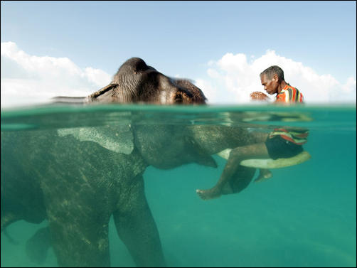 и как дышит слон у него хобот под водой ?