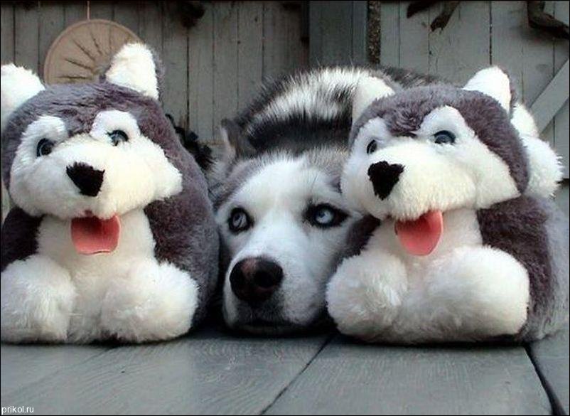 хаска среди игрушек умиляет, а фото с курящими яблоками