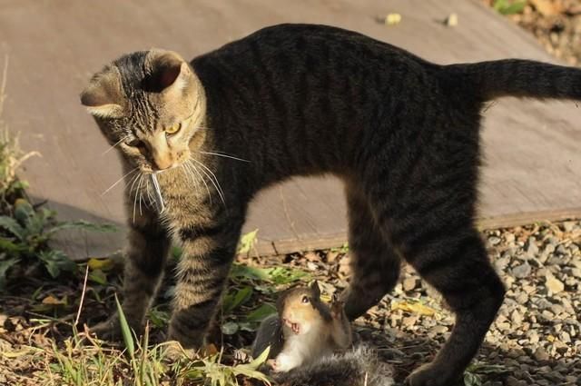 Белка решила поиграть с котом, но не учла разницу в весовых категориях :)