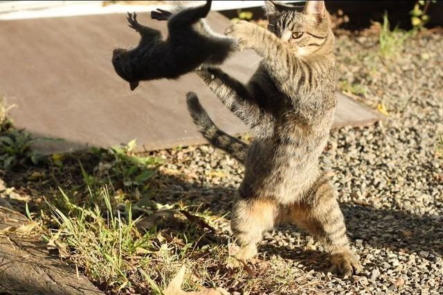 Мы слишком привыкли к идиоме хищник-жертва, считаем такие картинки «смешными». А вы видели, как голодные собаки раздирают кошку?