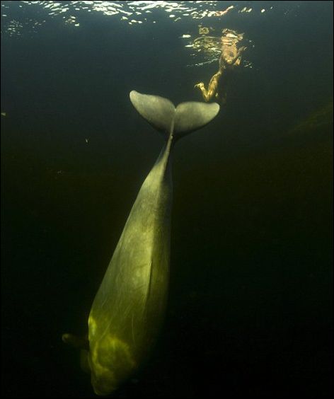 Голой потому что белухи эти бесятся от прикосновения искуственных материалов (например, ткани гидрокостюма)