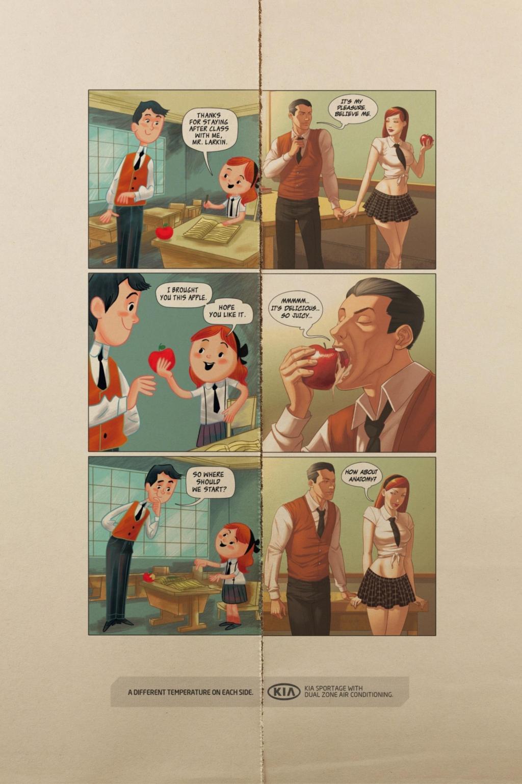 KIA — реклама двух-зонного кондиционера. Разная температура на каждой стороне.