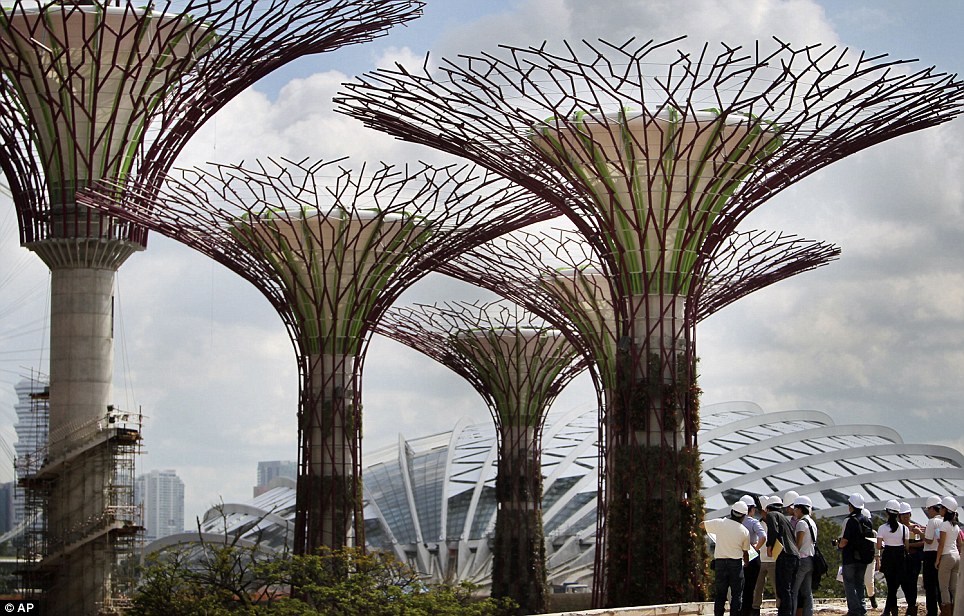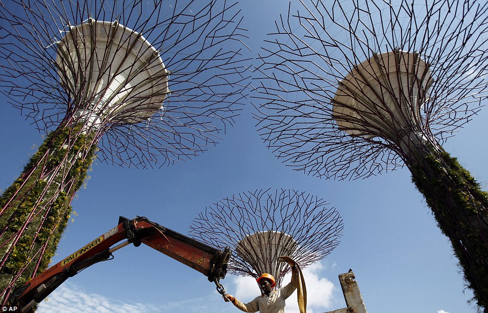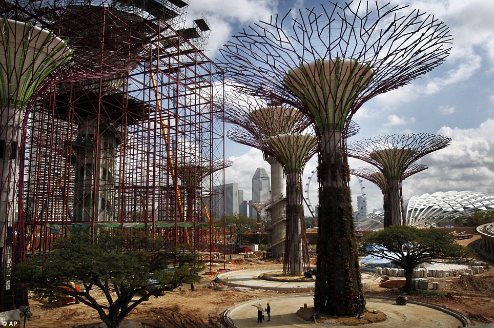 В Сингапуре полным ходом идет реализация проекта «Supertrees». Огромные 25-ти и 50-метровые «деревья» из бетона и стали появились на побережье залива.