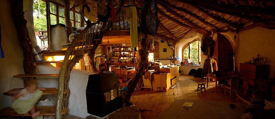 На счет шалаша не согласен. Внутри не смотря на своеобразный дизайн никуда не делось стандартное бытовое оформление.