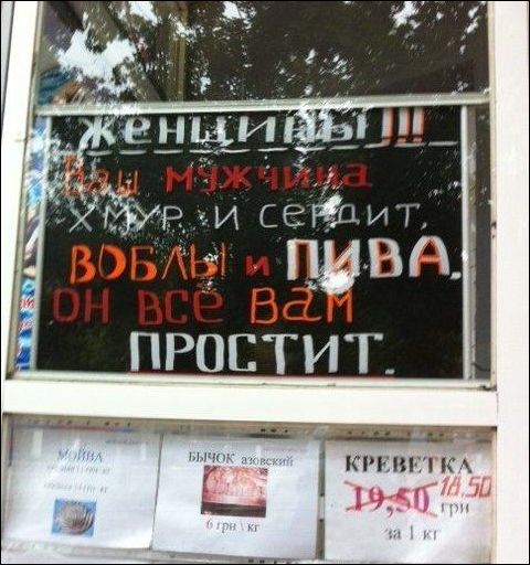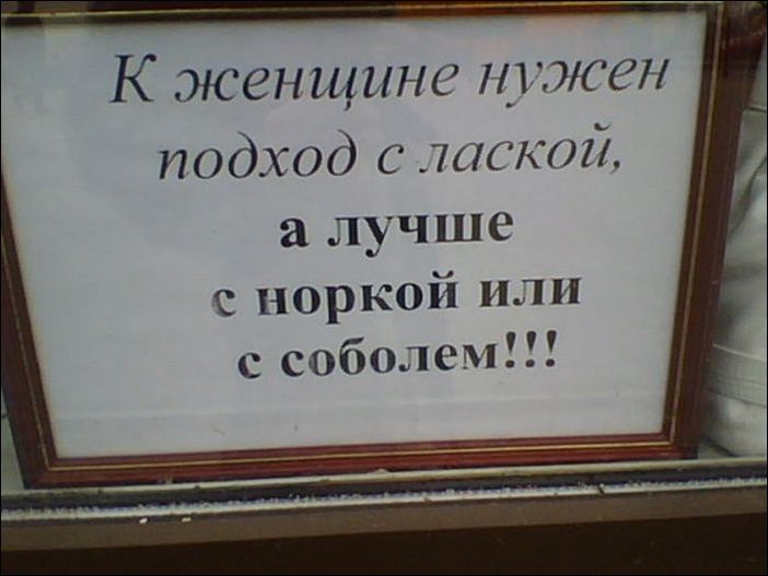 К каждому нужен свой подход. К мужчине — с воблой, к женщине — с лаской. :razz: