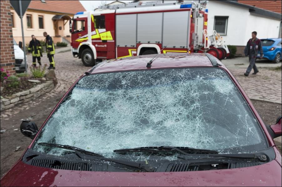 Град размером с кулак обрушился на Саксонию-Анхальт (Германия) в эти выходные.